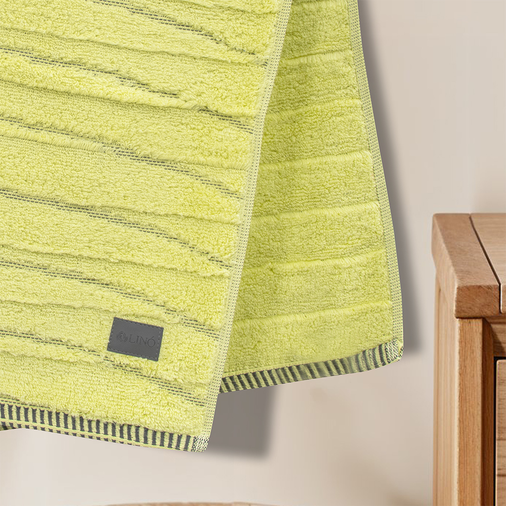 Πετσέτα προσώπου Lino Home της σειράς Loomline σε διάσταση 50x100 εκατοστών. Είναι από 100% βαμβάκι υψηλής ποιότητας με βάρος 600gr/m2, ιδιαίτερα απορροφητική και ανθεκτική, ενώ τα χρώματα που χρησιμοποιούνται είναι ανεξίτηλα και υποαλλεργικά. Επιλέξτε πετσέτες Lino Home για να απολαύσετε ποιότητα, στυλ και πολυτέλεια. Πλύσιμο έως τους 60°C. Σιδέρωμα σε μέτρια θερμοκρασία. Όχι χρήση χλωρίου ή λευκαντικού. Χρήση στεγνωτηρίου σε χαμηλή θερμοκρασία. Όχι στεγνό καθάρισμα. Προμηθευτής: Lino Home Επωνυμία: Loomline Σύνθεση: 100% Βαμβάκι | Βάρος: 600gsm Χρώμα: Λάιμ Διαστάσεις: 50x100 Μέγεθος: Προσώπου